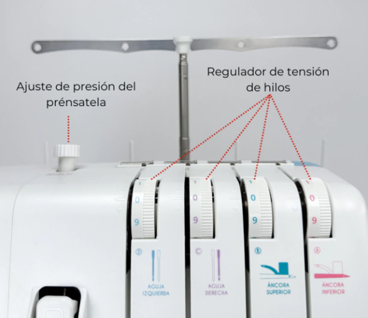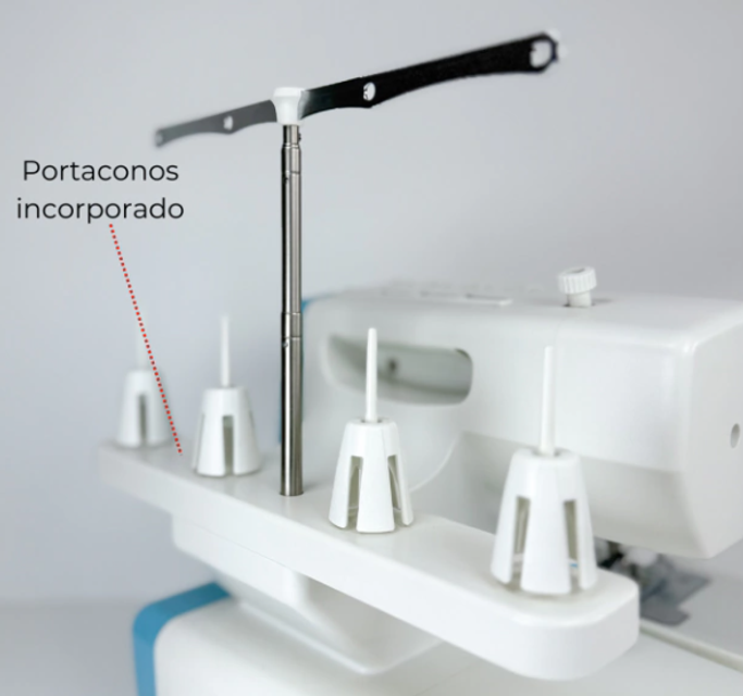 Incluye prénsatela para ribete, prénsatela para elástico, prénsatela para dobladillo invisible y funda.