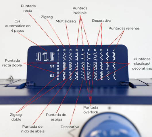 Permite crear prendas desde cero, colocar cierres, hacer ojales o coser tejidos de punto como lycra y jersey, así como también telas planas como el lino.