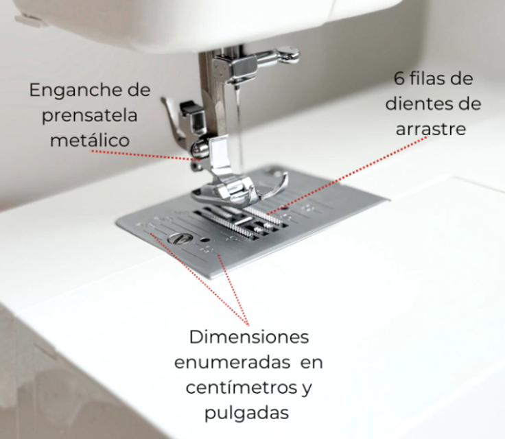 - Versatilidad en tejidos, acabados profesionales, amplia superficie de trabajo, chasis y componentes metálicos